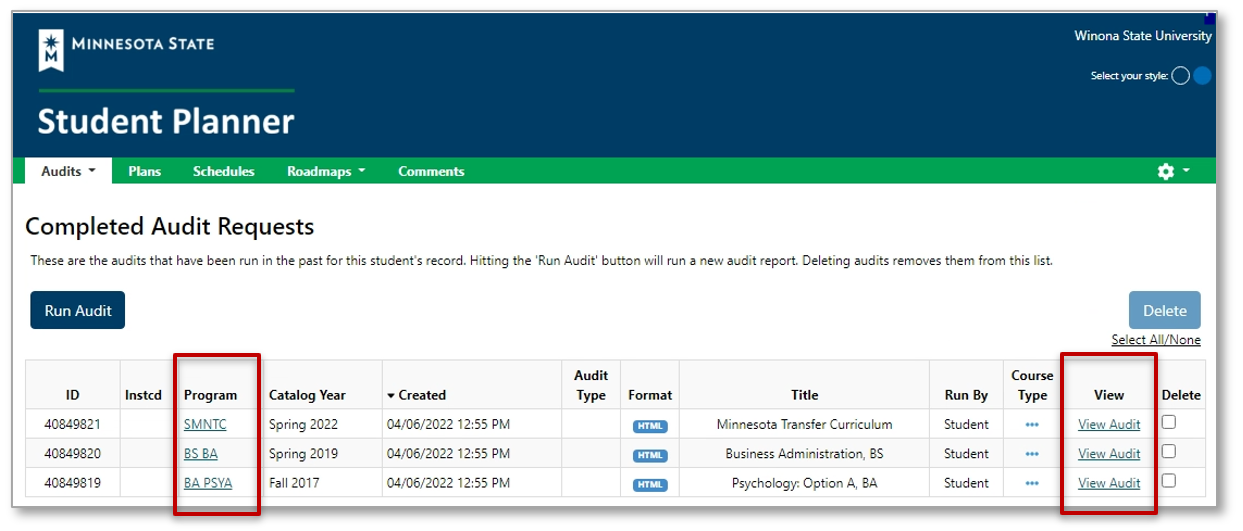 - Select the link under Program or View to open the audit results.